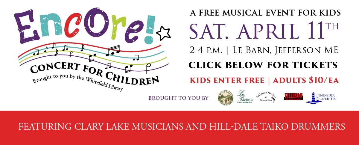 Join us on Saturday, April 11 from 2-4 P.M. at Le Barn in Jefferson, for a concert featuring Clary Lake Musicians and Hall-Dale Taiko Drummers! Kids tickets are FREE, and Read More ...
